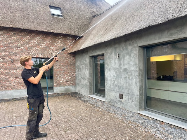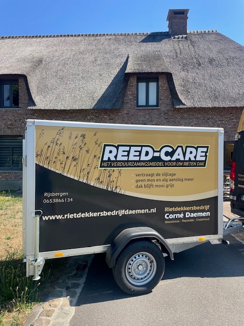 Reed-Care is een milieuvriendelijk middel, samengesteld uit 100% natuurlijke ingrediënten. Het wordt aangebracht door het dak zorgvuldig in te spuiten, direct na de afronding van het rietdekkerswerk of als onderhoudsbehandeling. Deze beschermlaag versterkt het riet van binnenuit, zonder de open structuur aan te tasten.