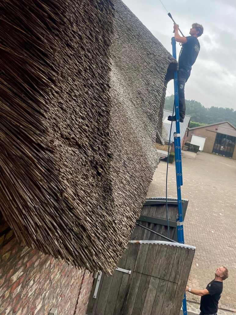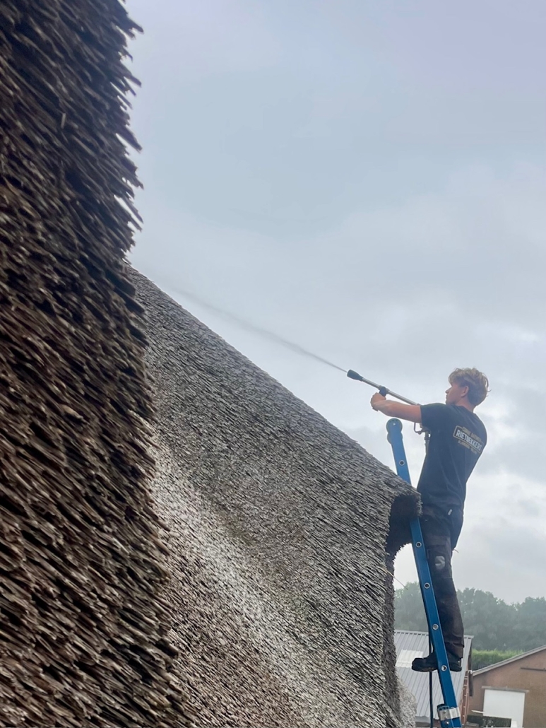 Riet is een prachtig en duurzaam natuurproduct, maar het blijft gevoelig voor veroudering en weersinvloeden. Om uw dak langer mooi en gezond te houden, introduceren wij Reed-Care — onze nieuwe behandelmethode voor langdurige bescherming van rieten daken.